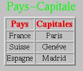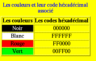 RČalisez les tableaux simples suivants sur la mÍme page en respectant les couleurs de fond et de caractËres.