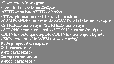 CrČez une page contenant la liste des balises suivantes et leur signification.