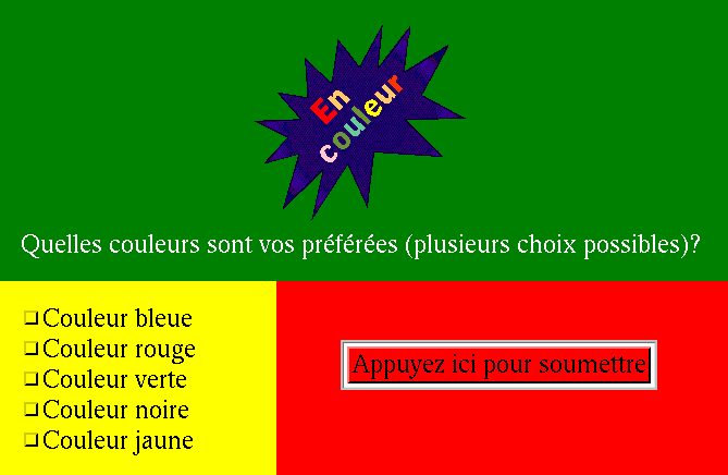 Le rÈsultat, si tous les boutons sont cochés est le suivant :